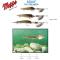 Ces leurres associent les effets de nage d'un streamer en fibre, spécialement conçu pour la pêche au lancer et les pulsations et les signaux optiques d'une Aglia. Le Streamer est monté sur un axe souple avec un hameçon simple en tête et un petit triple "voleur" en queue. Sa robe est composée de longues fibres où se marient pas moins de 10 coloris et où sont présents les signaux-clés : oeil,branchies, ligne latérale, microflashes.