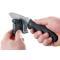 Conseils : Tenez l'aiguiseur de couteaux dans la zone nervurée avec votre main gauche et appuyez-le sur une surface ferme où il ne glissera pas. Tirez le couteau à travers l'affûteur trois ou quatre fois sans appliquer de force. Il sera alors prêt à être réutilisé.