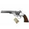 DESCRIPTIF : Revolver en excellent état ne possèdant quasiment aucune trace d'utilisation. Quelques traces de rayures sur le barillet. Effet nickelé. Livré avec 6 douilles BB's en excellent état.
