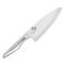 Les couteaux de la gamme Shoso ont une structure intégrale, c'est-à-dire qu'il n'y a pas de soudure entre la lame et le manche. La technique exclusive d'affûtage de Kaï comporte trois étapes (dont celle qui donne au tranchant l'angle de coupe optimal) ce qui permet une meilleure découpe des aliments.