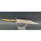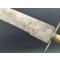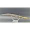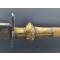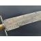 Baïonnette-bouchon pour fusil de chasse, fabrication française ou espagnole du XVIIIè. Forte lame de 26cm, large de 3.8cm. Poignée ronde en corne blonde qui s'emmanche dans le canon, garde en fer, garniture en laiton décoré, belle patine sans usure. Longueur totale 41cm