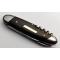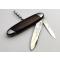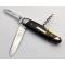 Élégant et rare petit couteau navette * Coutellerie Vauzy-Morel - Thiers vers 1922 * Lames acier 69 et 50 mm - marquées par le temps plus que par l'usage * Petit tire-bouchons * Platines en fer (laiton au centre) - mitres en acier - cotes en ébène de Macassar * Fermé 85 mm - 64 g * Modérément usagé - aucun jeu - ressorts efficaces
