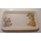 Ancien plat en céramique style barbotine déco fruits et légumes, marqué FG, longueur 34 cm, Largeur 18,5 cm