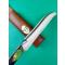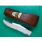 AVEC SON FOURREAU CUIR COUSU EPAIS FAIT SUR MESURE . MANCHE EN POLYMERE ( MICARTA PEUT ETRE ) COULEUR IVOIRE ( tres joli rendu avec une prise en main tres confortable ) . RESSORT & LAME GUILLOCHE . MOUCHE SPECIFIQUE .