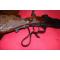 Voir sur la 2ème photo une clé de démontage du système de détente qu'il doit falloir démonter pour un nettoyage car elle n'accroche pas à l'armement , à mon avis a été repeinte en noir par protection car aucune trace de rouille , superbe crosse sculptée , aucun jeu , canon fluté , calibre 8.15x46R , voir marquage sur la dernière photo qui parait être en Allemand . Canon miroir avec de profondes rayures , Manque le point de mire (tige de 1mm facilement remplaçable) .Rare et belle pièce .