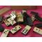 ANTIQUE Bone & Ebony Dominoes Ensemble incomplett de 27 pièces en laiton Pin Spinners