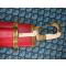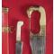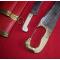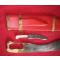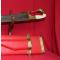 SHEATH: 55 cm, red leather with chiseled bronze bands