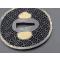 Rare tsuka en shakudo époque Meiji (1868-1912) représentant des sayagata en forme de svastika, bordures et tranches damasquinées d'or.