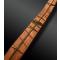 Arc en bois de section plate dont la partie médiane est renflée pour en faciliter la prise. Le dos est renforcé de nombreuses ligatures de tendons tressés.