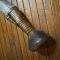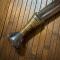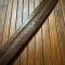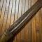 EN FER FORGÉ, MANCHE BOIS (fêle sans jeu) RECOUVERT D'UN LARGE FILIGRANE DE LAITON, ARME DECORÉ AU TRAIT SIR LES DEUX FACES, LAME A GORGE CENTRALE , ÉPAISSE DE 0,4 mm FINI EN TÊTE D'OISEAU STYLISÉ .