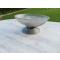 Magnifique ancienne grande coupe ronde en verre pressé moulé sur piédouche, monture en métal chromé avec socle intercalaire en bois noirci patiné.