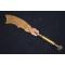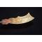 Coupe papier en forme de sabre cimeterre monté sur cartouche Mauser. Lame marquée CHAMPAGNE 1917. Et décors floral. Sur le culot est soudée une ogive de balle en griffe tenant une bille de schrapnell. Longueur totale 223 mm.