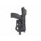 Ce holster entièrement ambidextre monté sur ceinture est construit à partir de polymère renforcé de verre de haute qualité et fonctionne en installant un rail de fixation sur le support inférieur de 20 mm de votre pistolet. Une fois que l'élément monté sur rail de l'étui est installé (il peut être installé en quelques secondes avec une clé hexagonale), il glisse simplement en place et s'enclenche fermement en position sur le support de ceinture. Même avec le clip de rétention monté sur le rail inférieur de 20 mm du pistolet, une lumière, un laser ou une poignée peuvent toujours être montés sur les clips de rétention du rail de 20 mm.