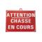 Attention chasse en cours dim 28 x 20 cm, Rouge : signalez efficacement votre espace de chasse grâce à ce panneau de signalisation robuste, conçu pour alerter et protéger. Idéal pour la sécurité lors des battues, ce panneau visible de loin grâce à sa couleur rouge vive garantit une prévention optimale des accidents en forêt ou en zone de chasse privée. Optez pour une signalétique professionnelle et conforme avec ce panneau "Attention chasse en cours" aux dimensions pratiques de 28 x 20 cm, spécialement pensé pour les chasseurs exigeants et les propriétaires de terrains.
