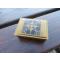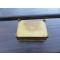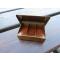 VINTAGE - ATYPIQUE Ancienne boite à timbre en laiton dorée avec décor marqueté et intérieur compartimenté en bois (XXé)
