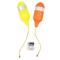 Avant de fixer votre corps de ligne ou votre leader, vous devez attacher deux perles fournies avec la bouteille-marqueur. Pour se faire, ce marqueur doit être fixé à la profondeur approximative du spot de pêche, pour laisser un peu de marge dans le mouvement du flotteur. Une fois que vous avez immergé votre montage à partir du bateau, fixez la bouteille- marqueur à votre ligne principale , entre les deux perles , en utilisant le clip sur la section élastique du marqueur.