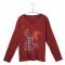 AXONE CHALON2B Tee shirt bordeaux manches longues col V avec imprimé devant et bas fendu