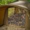 La configuration de la porte latérale permet de positionner des bivvies contre l'abri.