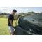 Le Gazebo propose des portes sur les quatre côtés, l'une avec un double zip, et des boucles et sangles pour la sécuriser, les autres avec une seule ouverture centrale et des élastiques pour les maintenir ouvertes.