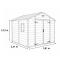 Abri de jardin en plastique de haute qualité, conçu pour offrir un espace de rangement sécurisé et durable. Dimensions généreuses de 181 x 231 x 222 cm (L x l x H) pour une surface de 4,18 m², idéal pour stocker outils, vélos, mobilier de jardin ou autres équipements.
