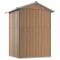 Abri de jardin Marron 126x97,5x177 cm Acier galvaniséCet abri de jardin indispensable est une excellente solution de stockage extérieur pour des articles tels que vos outils d'extérieur, essentiels de piscine, outils de jardinage et équipements similaires. Matériau durable : la remise à outils de jardin est fabriquée en acier galvanisé, ce qui empêche l'apparition de la rouille et dure longtemps.Espace de rangement spacieux : le hangar de rangement d'outils est étonnamment spacieux, offrant des solutions de rangement pour vos jouets d'extérieur, équipements et accessoires de piscine, ainsi que des équipements de jardinage, y compris des tuyaux, des bêches, des pots, des tondeuses à gazon, etc.Porte et poignée pratiques : le rangement pour outils d'extérieur est livré avec une porte coulissante pour une entrée facile. De plus, le design pratique de la poignée offre une commodité supplémentaire. Bon à savoir : Pour faciliter au maximum le montage, chaque produit est livré avec des instructions.