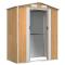Abri de jardin Marron clair 192x108x223 cm Acier galvaniséCet abri de jardin indispensable est une excellente solution de stockage extérieur pour des articles tels que vos outils d'extérieur, essentiels de piscine, outils de jardinage et équipements similaires. Matériau durable : la remise à outils de jardin est fabriquée en acier galvanisé, ce qui empêche l'apparition de la rouille et dure longtemps.Espace de rangement spacieux : le hangar de rangement d'outils est étonnamment spacieux, offrant des solutions de rangement pour vos jouets d'extérieur, équipements et accessoires de piscine, ainsi que des équipements de jardinage, y compris des tuyaux, des bêches, des pots, des tondeuses à gazon, etc.Porte et poignée pratiques : le rangement pour outils d'extérieur est livré avec une porte coulissante pour une entrée facile. De plus, le design pratique de la poignée offre une commodité supplémentaire.Orifice de ventilation pratique : l'orifice de ventilation pratique permet à l'air de circuler à l'intérieur de l'abri de stockage extérieur, en veillant à ce qu'il ne produise pas d'odeurs désagréables. Remarque :Chaque produit est livré avec un manuel de montage dans la boîte pour un montage facile.