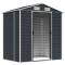 Abri de jardin anthracite 191x130x198 cm acier galvaniséÉlargissez vos possibilités de rangement à l'extérieur et protégez vos outils avec cet abri de jardin multifonctionnel. Matériau robuste : l'abri de jardin est fabriqué en acier galvanisé, ce qui l'empêche de rouiller et lui permet de résister à une utilisation de longue durée. L'acier est un matériau exceptionnellement dur et résistant. Il offre robustesse et stabilité. La galvanisation offre une meilleure protection contre la corrosion et est utile pour les produits qui seront utilisés à l'extérieur et dans des environnements difficiles.Beaucoup d'espace de rangement : cette remise en métal offre beaucoup d'espace pour ranger votre bois de chauffage, vos outils de jardinage, vos meubles, votre équipement et bien d'autres choses encore.Poignées pratiques : l'abri de rangement de jardin est équipé de poignées pour faciliter l'accès à l'abri.Bonne ventilation : l'abri d'extérieur est équipé de 4 bouches d'aération qui permettent de réduire l'accumulation d'humidité et d'odeurs dans la maison.Design incliné : le toit incliné assure une évacuation sans problème de l'eau.
