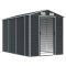 Abri de jardin anthracite 191x300x198 cm acier galvaniséAgrandissez vos possibilités de rangement extérieur et protégez vos outils avec cet abri de jardin multifonctionnel. Matériau robuste : cet abri de jardin est fabriqué en acier galvanisé, ce qui empêche la rouille et assure une utilisation durable. L'acier est un matériau exceptionnellement dur et résistant. Il offre robustesse et stabilité. La galvanisation offre une meilleure protection contre la corrosion et est utile pour les produits destinés à être utilisés à l'extérieur ainsi que dans des environnements difficiles. Grand espace de rangement : cet abri en métal offre suffisamment d'espace pour ranger votre bois de chauffage, vos outils de jardin, vos meubles, votre équipement et bien plus encore. Poignées pratiques : l'abri de rangement est doté de poignées sur la porte pour faciliter l'entrée. Bonne ventilation : l'abri extérieur est équipé de 4 bouches d'aération, assurant une ventilation pour réduire l'accumulation d'humidité et d'odeurs dans la maison. Conception en pente : le toit en pente assure un drainage sans entrave de l'eau. Bon à savoir : Pour éviter les dommages causés par une forte accumulation de neige, nous vous recommandons de dégager le toit régulièrement pendant l'hiver. Attention, il faut porter des gants de protection. Le port de gants de protection est obligatoire. Veuillez porter des lunettes de sécurité, des gants, des chaussures de sécurité et un casque (protection de la tête) lorsque vous installez l'abri de jardin. N'installez pas l'abri dans des conditions météorologiques extrêmes telles que des vents forts ou des températures basses. Ne laissez pas les enfants et les animaux domestiques dans la zone de montage. L'abri doit être construit sur une surface plane. Il est recommandé de fixer l'abri à un objet inamovible ou au sol. Veillez à ce que le toit soit exempt de neige et de feuilles. De fortes quantités de neige sur le toit peuvent endommager l'abri. Gardez les portes fermées et verrouillées pour éviter les dommages causés par le vent. Ne montez pas sur le toit. L'abri n'est pas adapté à l'habitation. Ne pas stocker ou utiliser d'objets chauds dans l'abri, tels que des barbecues, du matériel de soudage et des chalumeaux, afin d'éviter tout risque d'incendie. Le produit n'est pas un bâtiment de construction, destiné à des fins de loisirs. Il s'agit d'une installation autonome impermanente destinée uniquement au jardinage amateur.
