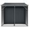 Abri de jardin anthracite 277x192,5x179 cm acier galvaniséÉlargissez vos possibilités de rangement à l'extérieur et protégez vos outils avec cet abri de jardin multifonctionnel. Matériau robuste : l'abri de jardin est fabriqué en acier galvanisé, ce qui l'empêche de rouiller et lui permet de résister à une utilisation de longue durée. L'acier est un matériau exceptionnellement dur et résistant. Il offre robustesse et stabilité. La galvanisation offre une meilleure protection contre la corrosion et est utile pour les produits qui seront utilisés à l'extérieur et dans des environnements difficiles.Beaucoup d'espace de rangement : cette remise en métal avec support pour bois de chauffage offre beaucoup d'espace pour ranger votre bois de chauffage, vos outils de jardinage, vos meubles, votre équipement et bien d'autres choses encore.Poignées pratiques : l'abri de rangement de jardin est équipé de poignées pour faciliter l'accès à l'abri.Bonne ventilation : l'abri d'extérieur est équipé de 4 bouches d'aération qui permettent de réduire l'accumulation d'humidité et d'odeurs dans la maison.Design incliné : le toit incliné assure une évacuation sans problème de l'eau.