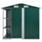 Abri de jardin avec étagère Vert 205x130x183 cm FerNotre abri de jardin avec étagère est idéal pour ranger une grande variété d'outils, de mobilier de jardin et d'équipements de jardin. L'abri de jardin offre non seulement une protection contre la saleté et la poussière, mais également contre le vent et les intempéries. Cette maison de stockage est construite en fer galvanisé, elle est donc stable et facile à entretenir. L'abri de jardin dispose d'aérations à l'avant et à l'arrière, assurant une excellente ventilation. Sa porte coulissante unique avec poignée de porte en plastique à l'avant permet d'entrer et de sortir facilement. Ce hangar de stockage extérieur est également facile à assembler.