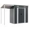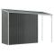 Abri de jardin avec toit prolongé anthracite 277x110,5x181 cmCet abri de jardin robuste, qui se distingue par son toit prolongé, est parfait pour ranger une grande variété d'articles tels que des outils, des meubles de jardin, du matériel de jardinage et bien plus encore. Matériau robuste : l'abri de jardin est fabriqué en acier galvanisé, ce qui l'empêche de rouiller et lui permet de résister à une utilisation de longue durée. L'acier est un matériau exceptionnellement dur et résistant. Il offre robustesse et stabilité. La galvanisation offre une meilleure protection contre la corrosion et est utile pour les produits qui seront utilisés à l'extérieur et dans des environnements difficiles.Grand espace de rangement : cet abri en métal offre beaucoup d'espace pour ranger votre bois de chauffage, vos outils de jardinage, vos meubles, votre équipement et bien plus encore. Il dispose également d'un toit prolongé pour stocker le bois de chauffage. Le toit peut être fixé d'un côté ou de l'autre de l'abri.Poignées pratiques : l'abri de rangement de jardin est équipé de poignées pour faciliter l'accès à l'abri.Bonne ventilation : l'abri d'extérieur est équipé de 2 bouches d'aération qui permettent de réduire l'accumulation d'humidité et d'odeurs dans la maison.Design incliné : le toit incliné assure une évacuation sans problème de l'eau.