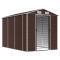 Abri de jardin marron 191x300x198 cm acier galvaniséÉlargissez vos possibilités de rangement à l'extérieur et protégez vos outils avec cet abri de jardin multifonctionnel. Matériau robuste : l'abri de jardin est fabriqué en acier galvanisé, ce qui l'empêche de rouiller et lui permet de résister à une utilisation de longue durée. L'acier est un matériau exceptionnellement dur et résistant. Il offre robustesse et stabilité. La galvanisation offre une meilleure protection contre la corrosion et est utile pour les produits qui seront utilisés à l'extérieur et dans des environnements difficiles.Beaucoup d'espace de rangement : cette remise en métal offre beaucoup d'espace pour ranger votre bois de chauffage, vos outils de jardinage, vos meubles, votre équipement et bien d'autres choses encore.Poignées pratiques : l'abri de rangement de jardin est équipé de poignées pour faciliter l'accès à l'abri.Bonne ventilation : l'abri d'extérieur est équipé de 4 bouches d'aération qui permettent de réduire l'accumulation d'humidité et d'odeurs dans la maison.Design incliné : le toit incliné assure une évacuation sans problème de l'eau.