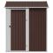 Abri de jardin marron 192x152,5x237 cm acier galvaniséÉlargissez vos possibilités de rangement à l'extérieur et protégez vos outils avec cet abri de jardin multifonctionnel. Matériau robuste : l'abri de jardin est fabriqué en acier galvanisé, ce qui l'empêche de rouiller et lui permet de résister à une utilisation de longue durée. L'acier est un matériau exceptionnellement dur et résistant. Il offre robustesse et stabilité. La galvanisation offre une meilleure protection contre la corrosion et est utile pour les produits qui seront utilisés à l'extérieur et dans des environnements difficiles.Beaucoup d'espace de rangement : cette remise en métal offre beaucoup d'espace pour ranger votre bois de chauffage, vos outils de jardinage, vos meubles, votre équipement et bien d'autres choses encore.Porte pratique : la porte permet un accès rapide et facile à vos outils et protège vos articles stockés des petits animaux ou du vent.Bonne ventilation : l'abri d'extérieur est équipé de 4 bouches d'aération qui permettent de réduire l'accumulation d'humidité et d'odeurs dans la maison.Design incliné : le toit incliné assure une évacuation sans problème de l'eau.