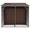 Abri de jardin marron 277x192,5x179 cm acier galvaniséÉlargissez vos possibilités de rangement à l'extérieur et protégez vos outils avec cet abri de jardin multifonctionnel. Matériau robuste : l'abri de jardin est fabriqué en acier galvanisé, ce qui l'empêche de rouiller et lui permet de résister à une utilisation de longue durée. L'acier est un matériau exceptionnellement dur et résistant. Il offre robustesse et stabilité. La galvanisation offre une meilleure protection contre la corrosion et est utile pour les produits qui seront utilisés à l'extérieur et dans des environnements difficiles.Beaucoup d'espace de rangement : cette remise en métal avec support pour bois de chauffage offre beaucoup d'espace pour ranger votre bois de chauffage, vos outils de jardinage, vos meubles, votre équipement et bien d'autres choses encore.Poignées pratiques : l'abri de rangement de jardin est équipé de poignées pour faciliter l'accès à l'abri.Bonne ventilation : l'abri d'extérieur est équipé de 4 bouches d'aération qui permettent de réduire l'accumulation d'humidité et d'odeurs dans la maison.Design incliné : le toit incliné assure une évacuation sans problème de l'eau.