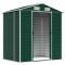 Abri de jardin vert 191x130x198 cm acier galvaniséÉlargissez vos possibilités de rangement à l'extérieur et protégez vos outils avec cet abri de jardin multifonctionnel. Matériau robuste : l'abri de jardin est fabriqué en acier galvanisé, ce qui l'empêche de rouiller et lui permet de résister à une utilisation de longue durée. L'acier est un matériau exceptionnellement dur et résistant. Il offre robustesse et stabilité. La galvanisation offre une meilleure protection contre la corrosion et est utile pour les produits qui seront utilisés à l'extérieur et dans des environnements difficiles.Beaucoup d'espace de rangement : cette remise en métal offre beaucoup d'espace pour ranger votre bois de chauffage, vos outils de jardinage, vos meubles, votre équipement et bien d'autres choses encore.Poignées pratiques : l'abri de rangement de jardin est équipé de poignées pour faciliter l'accès à l'abri.Bonne ventilation : l'abri d'extérieur est équipé de 4 bouches d'aération qui permettent de réduire l'accumulation d'humidité et d'odeurs dans la maison.Design incliné : le toit incliné assure une évacuation sans problème de l'eau.