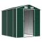 Abri de jardin vert 191x215x198 cm acier galvaniséÉlargissez vos possibilités de rangement à l'extérieur et protégez vos outils avec cet abri de jardin multifonctionnel. Matériau robuste : l'abri de jardin est fabriqué en acier galvanisé, ce qui l'empêche de rouiller et lui permet de résister à une utilisation de longue durée. L'acier est un matériau exceptionnellement dur et résistant. Il offre robustesse et stabilité. La galvanisation offre une meilleure protection contre la corrosion et est utile pour les produits qui seront utilisés à l'extérieur et dans des environnements difficiles.Beaucoup d'espace de rangement : cette remise en métal offre beaucoup d'espace pour ranger votre bois de chauffage, vos outils de jardinage, vos meubles, votre équipement et bien d'autres choses encore.Poignées pratiques : l'abri de rangement de jardin est équipé de poignées pour faciliter l'accès à l'abri.Bonne ventilation : l'abri d'extérieur est équipé de 4 bouches d'aération qui permettent de réduire l'accumulation d'humidité et d'odeurs dans la maison.Design incliné : le toit incliné assure une évacuation sans problème de l'eau.