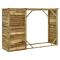 Abri d'outils de jardin Pin 253 x 80 x 170 cmNotre remise à bois / outils 2 en 1 dégage un charme rustique et sera un supplément pratique à votre terrasse, jardin ou cour. Grand espace de rangement : composé d'un casier à bûches et d'une grande armoire, l'abri de jardin offre suffisamment d'espace pour organiser le bois de chauffage, ainsi que des outils, du matériel de jardinage, etc.Bois de pin massif : cet abri de rangement extérieur est fabriqué en bois de pin. Le bois de pin imprégné est résistant à l'usure, aux intempéries et à la pourriture.Toit imperméable : de plus, le toit est recouvert d'un feutre de papier goudronné imperméable. Bon à savoir :Le bois est un produit naturel et peut présenter des imperfections.