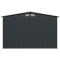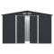 Abri de stockage pour jardin Anthracite Acier 257x205x178 cm Cet abri de stockage en métal sera un excellent accessoire à l'arrière-cour, à la pelouse ou au jardin. Il est idéal pour stocker des outils de jardin, du matériel d'entretien de la pelouse, des articles ménagers et bien plus encore ! Conception pratique : cet abri de stockage a 4 orifices d'air, 2 à l'avant et 2 à l'arrière, assurant une excellente ventilation. Les doubles portes coulissantes à l'avant permettent une entrée et une sortie faciles.Matériau durable : la construction en acier galvanisé le rend durable et solide, donc elle ne se corrodera ni sera pas affectée par les conditions météorologiques extrêmes. Elle comprend également un cadre en acier qui accentue la stabilité et est parfaite pour une finition de plancher en bois (bois non inclus).Facile à assembler : les pièces pré-découpées, pré-percées et le manuel d'utilisation inclus assurent un assemblage rapide et facile.