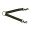 Cet accouple pour deux chiens en nylon est équipé de deux mousquetons et d'un anneau. L'anneau est conçu pour la laisse et les mousquetons pour les colliers. Cet accouple nylon pour chiens mesure 25 cm de long et 25 mm de large.