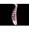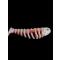 Courbure, roulis et turbulences du corps grâce aux nombreuses nervures. Cela ralentit le mouvement du corps et permet de créer un swimbait plus large mais plus fin.