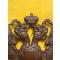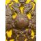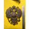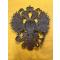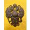 Aigle bicéphale de coiffure militaire de la Russie des Tsars, en laiton. Pièce authehtique en excellent état, sans cabossage, rayures, etc. L'aigle a deux têtes est complet, dans un excellent état d'origine. Comme tous les objets que je vends, je laisse le soin à l'acheteur de "raviver" la pièce en passant des produits à reluire pour le cuivre ou une brosse légère pour mettre un peu de patine.