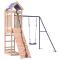 Aire de jeux d'extérieur bois massif de douglasVous voulez donner à vos enfants la liberté de jouer à la maison ? Cet ensemble de jeu d'extérieur en bois transforme votre jardin en un terrain de jeu propice aux aventures imaginatives ! Matériau durable : ce cadre d'aire de jeux de jardin est fabriqué en bois de douglas massif. Le bois de douglas est connu pour sa résistance et sa durabilité. Sa couleur brun rougeâtre riche et ses grains uniques dégagent une ambiance chaleureuse et naturelle. Sa stabilité et sa résistance aux intempéries sont idéales pour la fabrication de meubles d'intérieur et d'extérieur.Cadre en bois stable : le cadre en bois de la maisonnette de jardin garantit sa robustesse et sa stabilité. De plus, les pieds en forme de A de la balançoire pour enfants permettent de garder l'équilibre.Centres multi-activités : le cadre d'escalade est doté d'une plate-forme de 118 cm de hauteur et se distingue par son mur d'escalade, une balançoire simple ainsi que des bacs à sable. Vos enfants peuvent également inviter leurs amis à s'amuser.Conception réfléchie : les garde-corps en bois qui entourent l'abri sont conçus pour assurer la sécurité des enfants pendant qu'ils s'amusent. De plus, le toit en forme de nuage offre de l'ombre à vos enfants pendant les chaudes journées d'été.Plaisir sans fin : cette aire de jeux d'extérieur en bois est le moyen idéal pour vos enfants et leurs amis de se divertir, d'avoir plus de temps interactif et de créer des souvenirs pour vous et vos enfants ! Attention :Uniquement pour un usage domestiqueUtilisation extérieureNe convient pas aux enfants de moins de 3 ansÂge recommandé : 3-8 ansPoids maximal par utilisateur : 45 kg Bon à savoir :Le produit doit être ancré afin de réduire les risques de basculement. Les ancrages ne sont pas inclus. Avertissement. Ne convient pas aux enfants de moins de 3 ans. Usage domestique uniquement. GPSR