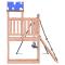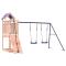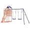 Aire de jeux d'extérieur bois massif de douglasVous voulez donner à vos enfants la liberté de jouer à la maison ? Cet ensemble de jeu d'extérieur en bois transforme votre jardin en un terrain de jeu propice aux aventures imaginatives ! Matériau durable : ce cadre d'aire de jeux de jardin est fabriqué en bois de douglas massif. Le bois de douglas est connu pour sa résistance et sa durabilité. Sa couleur brun rougeâtre riche et ses grains uniques dégagent une ambiance chaleureuse et naturelle. Sa stabilité et sa résistance aux intempéries sont idéales pour la fabrication de meubles d'intérieur et d'extérieur.Cadre en bois stable : le cadre en bois de la maisonnette de jardin garantit sa robustesse et sa stabilité. De plus, les pieds en forme de A de la balançoire pour enfants permettent de garder l'équilibre.Centres multi-activités : le cadre d'escalade est doté d'une plate-forme de 90 cm de hauteur et se distingue par son mur d'escalade, une double balançoire ainsi qu'un bac à sable. Vos enfants peuvent également inviter leurs amis à s'amuser.Conception réfléchie : les garde-corps en bois qui entourent l'abri sont conçus pour assurer la sécurité des enfants pendant qu'ils s'amusent. De plus, le toit en forme de nuage offre de l'ombre à vos enfants pendant les chaudes journées d'été.Plaisir sans fin : cette aire de jeux d'extérieur en bois est le moyen idéal pour vos enfants et leurs amis de se divertir, d'avoir plus de temps interactif et de créer des souvenirs pour vous et vos enfants ! Attention :Uniquement pour un usage domestiqueUtilisation extérieureNe convient pas aux enfants de moins de 3 ansÂge recommandé : 3-8 ansPoids maximal par utilisateur : 45 kg Bon à savoir :Le produit doit être ancré afin de réduire les risques de basculement. Les ancrages ne sont pas inclus. Avertissement. Ne convient pas aux enfants de moins de 3 ans. Usage domestique uniquement. GPSR