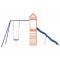 Aire de jeux d'extérieur bois massif de douglasVous voulez donner à vos enfants la liberté de jouer à la maison ? Cet ensemble de jeu d'extérieur en bois transforme votre jardin en un terrain de jeu propice aux aventures imaginatives ! Bois de douglas massif : ce cadre d'escalade de jardin est fabriqué en bois de douglas massif. Le bois de douglas massif est un bois très durable qui fonctionne bien pour l'extérieur. Le bois de douglas est également suffisamment solide pour être travaillé avec un minimum de soin, même sous l'influence des intempéries.Cadre robuste et stable : le cadre en bois de l'ensemble de jeu assure la robustesse et la stabilité. De plus, les pieds en forme de A de la balançoire pour enfants permettent de garder l'équilibre.Centres multi-activités : l'aire de jeux est dotée d'une plate-forme de 118 cm de hauteur et se distingue par son mur de pierres, son toboggan ondulé, une balançoire simple ainsi qu'un bac à sable. Vos enfants peuvent également inviter leurs amis à jouer ensemble. Conception réfléchie : les garde-corps en bois qui entourent l'abri sont conçus pour assurer la sécurité des enfants pendant qu'ils s'amusent. De plus, le toit en bois offre de l'ombre à vos enfants pendant les chaudes journées d'été.Plaisir sans fin : cette maisonnette de jeu en bois est le moyen idéal pour vos enfants et leurs amis de se divertir, d'avoir plus de temps interactif et de créer des souvenirs pour vous et vos enfants ! Attention :Uniquement pour un usage domestiqueUtilisation extérieureNe convient pas aux enfants de moins de 3 ansÂge recommandé : 3-8 ans Remarque :Le produit doit être ancré afin de réduire les risques de basculement. Les ancres sont incluses. Avertissement. Ne convient pas aux enfants de moins de 3 ans. Usage domestique uniquement. GPSR