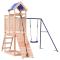 Aire de jeux d'extérieur bois massif de douglasVous voulez donner à vos enfants la liberté de jouer à la maison ? Cet ensemble de jeu d'extérieur en bois transforme votre jardin en un terrain de jeu propice aux aventures imaginatives ! Matériau durable : ce cadre d'aire de jeux de jardin est fabriqué en bois de douglas massif. Le bois de douglas est connu pour sa résistance et sa durabilité. Sa couleur brun rougeâtre riche et ses grains uniques dégagent une ambiance chaleureuse et naturelle. Sa stabilité et sa résistance aux intempéries sont idéales pour la fabrication de meubles d'intérieur et d'extérieur.Cadre en bois stable : le cadre en bois de la maisonnette de jardin garantit sa robustesse et sa stabilité. De plus, les pieds en forme de A de la balançoire pour enfants permettent de garder l'équilibre.Centres multi-activités : le cadre d'escalade est doté d'une plate-forme de 90 cm de hauteur et se distingue par son mur d'escalade, une balançoire simple, une échelle ainsi qu'un bac à sable. Vos enfants peuvent également inviter leurs amis à s'amuser.Conception réfléchie : les garde-corps en bois qui entourent l'abri sont conçus pour assurer la sécurité des enfants pendant qu'ils s'amusent. De plus, le toit en forme de nuage offre de l'ombre à vos enfants pendant les chaudes journées d'été.Plaisir sans fin : cette aire de jeux d'extérieur en bois est le moyen idéal pour vos enfants et leurs amis de se divertir, d'avoir plus de temps interactif et de créer des souvenirs pour vous et vos enfants ! Attention :Uniquement pour un usage domestiqueUtilisation extérieureNe convient pas aux enfants de moins de 3 ansÂge recommandé : 3-8 ansPoids maximal par utilisateur : 45 kg Bon à savoir :Le produit doit être ancré afin de réduire les risques de basculement. Les ancrages ne sont pas inclus. Avertissement. Ne convient pas aux enfants de moins de 3 ans. Usage domestique uniquement. GPSR