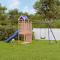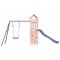 Aire de jeux d'extérieur bois massif de douglasVous voulez donner à vos enfants la liberté de jouer à la maison ? Cet ensemble de jeu d'extérieur en bois transforme votre jardin en un terrain de jeu propice aux aventures imaginatives ! Matériau durable : ce cadre d'aire de jeux de jardin est fabriqué en bois de douglas massif. Le bois de douglas est connu pour sa résistance et sa durabilité. Sa couleur brun rougeâtre riche et ses grains uniques dégagent une ambiance chaleureuse et naturelle. Sa stabilité et sa résistance aux intempéries sont idéales pour la fabrication de meubles d'intérieur et d'extérieur.Cadre en bois stable : le cadre en bois de la maisonnette de jardin garantit sa robustesse et sa stabilité. De plus, les pieds en forme de A de la balançoire pour enfants permettent de garder l'équilibre.Centres multi-activités : le cadre d'escalade est doté d'une plate-forme de 90 cm de hauteur et se distingue par son toboggan ondulé, une balançoire simple, une paroi rocheuse ainsi qu'un bac à sable. Vos enfants peuvent également inviter leurs amis à s'amuser.Conception réfléchie : les garde-corps en bois qui entourent l'abri sont conçus pour assurer la sécurité des enfants pendant qu'ils s'amusent. De plus, le toit en forme de nuage offre de l'ombre à vos enfants pendant les chaudes journées d'été.Plaisir sans fin : cette aire de jeux d'extérieur en bois est le moyen idéal pour vos enfants et leurs amis de se divertir, d'avoir plus de temps interactif et de créer des souvenirs pour vous et vos enfants ! Attention :Uniquement pour un usage domestiqueUtilisation extérieureNe convient pas aux enfants de moins de 3 ansÂge recommandé : 3-8 ans Bon à savoir :La livraison inclut uniquement le toboggan, le théâtre n'est pas inclus.Le produit doit être ancré afin de réduire les risques de basculement. Les ancrages ne sont pas inclus. Avertissement. Ne convient pas aux enfants de moins de 3 ans. Usage domestique uniquement. GPSR
