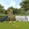 Aire de jeux d'extérieur bois de pin imprégnéVous voulez donner à vos enfants la liberté de jouer à la maison ? Cet ensemble de jeu d'extérieur en bois transforme votre jardin en un terrain de jeu propice aux aventures imaginatives ! Bois imprégné : ce cadre d'escalade est fabriqué en bois de pin imprégné sous vide. Le bois de pin massif est un matériau naturel magnifique. Le bois de pin a un grain droit et les noeuds lui confèrent un aspect rustique caractéristique. L'imprégnation est un processus de conservation réalisé à l'aide d'autoclaves. Le traitement sous pression augmente la résistance à la pourriture et aux intempéries.Cadre robuste et stable : le cadre en bois de l'ensemble de jeu assure la robustesse et la stabilité. De plus, les pieds en forme de A de la balançoire pour enfants permettent de garder l'équilibre.Centres multi-activités : l'aire de jeux est dotée d'une plate-forme de 118 cm de hauteur et se distingue par son toboggan ondulé, une balançoire double ainsi qu'un bac à sable. Vos enfants peuvent également inviter leurs amis à jouer ensemble.Conception réfléchie : les garde-corps en bois qui entourent l'abri sont conçus pour assurer la sécurité des enfants pendant qu'ils s'amusent. De plus, le toit en bois offre de l'ombre à vos enfants pendant les chaudes journées d'été.Plaisir sans fin : cette maisonnette de jeu en bois est le moyen idéal pour vos enfants et leurs amis de se divertir, d'avoir plus de temps interactif et de créer des souvenirs pour vous et vos enfants ! Attention :Uniquement pour un usage domestiqueUtilisation extérieureNe convient pas aux enfants de moins de 3 ansÂge recommandé : 3-8 ans Remarque :Le produit doit être ancré afin de réduire les risques de basculement. Les ancres sont incluses. Avertissement. Ne convient pas aux enfants de moins de 3 ans. Usage domestique uniquement. GPSR