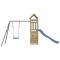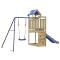 Aire de jeux d'extérieur bois de pin imprégnéVous voulez donner à vos enfants la liberté de jouer à la maison ? Cet ensemble de jeu d'extérieur en bois transforme votre jardin en un terrain de jeu propice aux aventures imaginatives ! Matériau durable : ce cadre d'aire de jeux de jardin est fabriqué en bois de pin imprégné sous vide. Le bois de pin massif est connu pour sa résistance et sa durabilité. Ses grains droits et ses noeuds distinctifs contribuent à son charme rustique. Il a été imprégné avec une solution de conservation et a subi un traitement en autoclave, ce qui renforce sa résistance à la pourriture et aux intempéries.Cadre en bois stable : le cadre en bois de la maisonnette de jardin garantit sa robustesse et sa stabilité. De plus, les pieds en forme de A de la balançoire pour enfants permettent de garder l'équilibre.Centres multi-activités : le cadre d'escalade est doté d'une plate-forme de 90 cm de hauteur et se distingue par son toboggan ondulé, une balançoire simple, une paroi rocheuse ainsi qu'un bac à sable. Vos enfants peuvent également inviter leurs amis à s'amuser.Conception réfléchie : les garde-corps en bois qui entourent l'abri sont conçus pour assurer la sécurité des enfants pendant qu'ils s'amusent. De plus, le toit en forme de nuage offre de l'ombre à vos enfants pendant les chaudes journées d'été.Plaisir sans fin : cette aire de jeux d'extérieur en bois est le moyen idéal pour vos enfants et leurs amis de se divertir, d'avoir plus de temps interactif et de créer des souvenirs pour vous et vos enfants ! Attention :Uniquement pour un usage domestiqueUtilisation extérieureNe convient pas aux enfants de moins de 3 ansÂge recommandé : 3-8 ans Bon à savoir :Le produit doit être ancré afin de réduire les risques de basculement. Les ancrages ne sont pas inclus. Avertissement. Ne convient pas aux enfants de moins de 3 ans. Usage domestique uniquement. GPSR