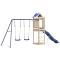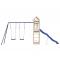 Aire de jeux d'extérieur bois de pin massifVous voulez donner à vos enfants la liberté de jouer à la maison ? Cet ensemble de jeu d'extérieur en bois transforme votre jardin en un terrain de jeu propice aux aventures imaginatives ! Matériau durable : ce cadre d'aire de jeux de jardin est fabriqué en bois de pin massif. Le bois de pin massif est connu pour sa résistance et sa durabilité. Ses grains droits et ses noeuds distinctifs contribuent à son charme rustique.Cadre en bois stable : le cadre en bois de la maisonnette de jardin garantit sa robustesse et sa stabilité. De plus, les pieds en forme de A de la balançoire pour enfants permettent de garder l'équilibre.Centres multi-activités : le cadre d'escalade est doté d'une plate-forme de 118 cm de hauteur et se distingue par son toboggan ondulé, une double balançoire et un bac à sable. Vos enfants peuvent également inviter leurs amis à s'amuser.Conception réfléchie : les garde-corps en bois qui entourent l'abri sont conçus pour assurer la sécurité des enfants pendant qu'ils s'amusent. De plus, le toit en forme de nuage offre de l'ombre à vos enfants pendant les chaudes journées d'été.Plaisir sans fin : cette aire de jeux d'extérieur en bois est le moyen idéal pour vos enfants et leurs amis de se divertir, d'avoir plus de temps interactif et de créer des souvenirs pour vous et vos enfants ! Attention :Uniquement pour un usage domestiqueUtilisation extérieureNe convient pas aux enfants de moins de 3 ansÂge recommandé : 3-8 ans Bon à savoir :Le produit doit être ancré afin de réduire les risques de basculement. Les ancres sont incluses. Avertissement. Ne convient pas aux enfants de moins de 3 ans. Usage domestique uniquement. GPSR