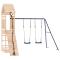 Aire de jeux d'extérieur bois de pin massifVous voulez donner à vos enfants la liberté de jouer à la maison ? Cet ensemble de jeu d'extérieur en bois transforme votre jardin en un terrain de jeu propice aux aventures imaginatives ! Bois de pin massif : ce cadre d'escalade de jardin est fabriqué en bois de pin massif. Le pin massif est un matériau naturel magnifique. Le bois de pin a un grain droit et les noeuds lui confèrent son aspect rustique caractéristique.Cadre robuste et stable : le cadre en bois de l'ensemble de jeu assure la robustesse et la stabilité. De plus, les pieds en forme de A de la balançoire pour enfants permettent de garder l'équilibre.Centres multi-activités : le cadre d'escalade est doté d'une plate-forme de 90 cm de hauteur et se distingue par son mur d'escalade avec corde, une double balançoire et un bac à sable. Vos enfants peuvent également inviter leurs amis à s'amuser.Conception réfléchie : les garde-corps en bois qui entourent l'abri sont conçus pour assurer la sécurité des enfants pendant qu'ils s'amusent. De plus, le toit en bois offre de l'ombre à vos enfants pendant les chaudes journées d'été.Plaisir sans fin : cette aire de jeux de jardin en bois est le moyen idéal pour vos enfants et leurs amis de se divertir, d'avoir plus de temps interactif et de créer des souvenirs pour vous et vos enfants ! Attention :Uniquement pour un usage domestiqueUtilisation extérieureNe convient pas aux enfants de moins de 3 ansÂge recommandé : 3-8 ans Poids maximal par utilisateur : 45 kg Remarque :Le produit doit être ancré afin de réduire les risques de basculement. Les ancrages ne sont pas inclus. Bon à savoir :Pour faciliter au maximum le montage, chaque produit est livré avec des instructions. Avertissement. Ne convient pas aux enfants de moins de 3 ans. Usage domestique uniquement. GPSR